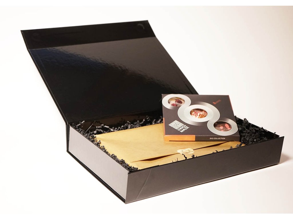 Balenie v luxusnom prevedení s čiernou krabicou s magnetickým uzáverom a zlatým baliacim papierom pre najlepší prvý dojem.