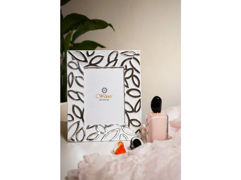 Rám Dargento Bianco, biely v kombinácii so striebornými lístkami s nádychom romantiky.
