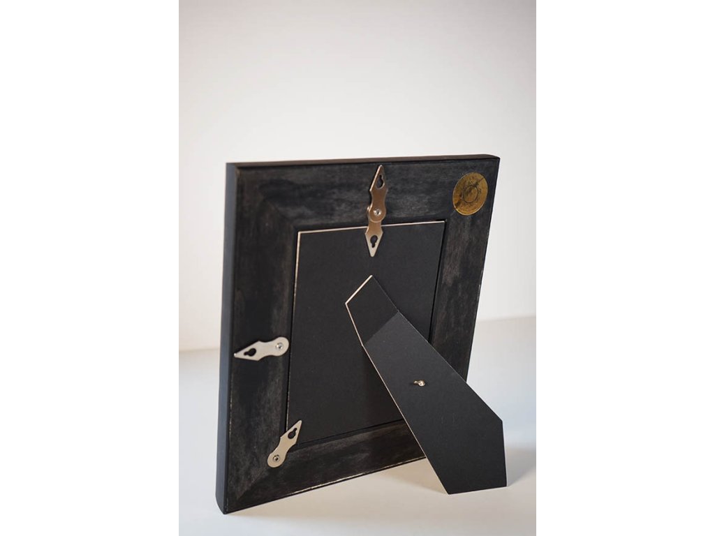Rám vyrobený z masívneho dreva s viacvrstvovou povrchovou úpravou tak, aby splnil vysoké nároky na kvalitu. Lišta od talianskeho výrobcu, zadná strana s nožičkou a závesnými háčikmi na výšku aj na šírku.