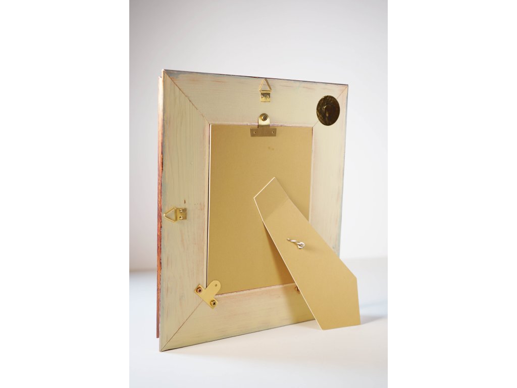 Rám vyrobený z masívneho dreva s viacvrstvovou povrchovou úpravou tak, aby splnil vysoké nároky na kvalitu. Lišta od talianskeho výrobcu, zadná strana s nožičkou a závesnými háčikmi na výšku aj na šírku.