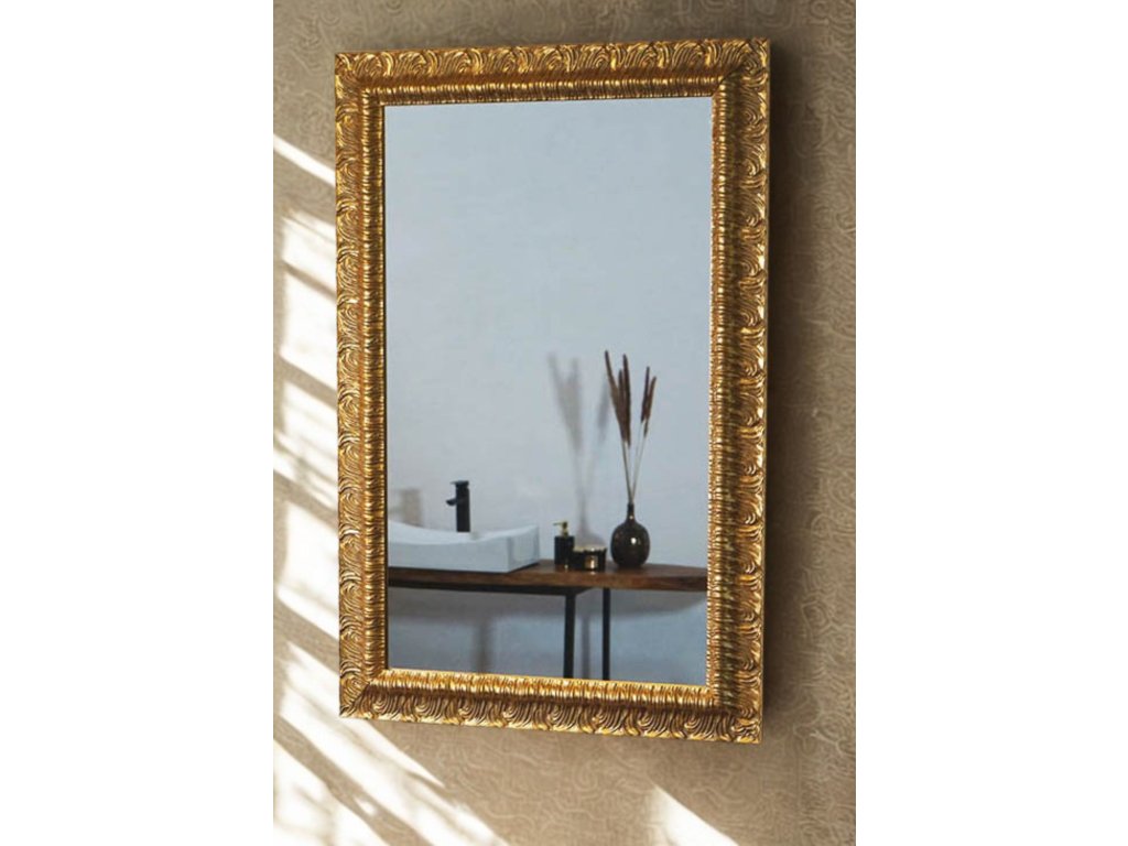 Rám v zlatej farbe s výrazným vlnovým vzorom zaujme milovníkov oblých línií a moderného dizajnu. Zrkadlo vynikne v modernej kúpeľni alebo predsieni a stane sa skutočným pútačom a dekoračným prvkom.